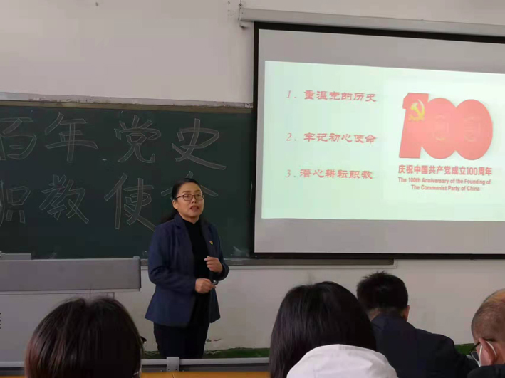 为庆祝中国共产党成立100周年,推动党史学习教育走深走实,2021年10月27日下午,电子信息系党支部书记李鑫在尚学楼1211教室作“重温百年党史 坚定理想信念”专题党课,电子信息系全体党员教师认真聆...