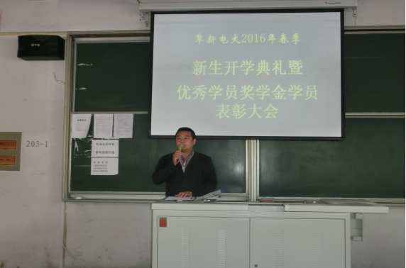 4月23日上午9点,电大部举行了16春季新生开学典礼暨优秀学员奖学金学员表彰大会,校党委书记吕东春、电大部主任崔英芬