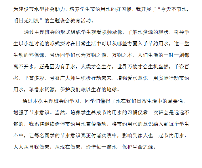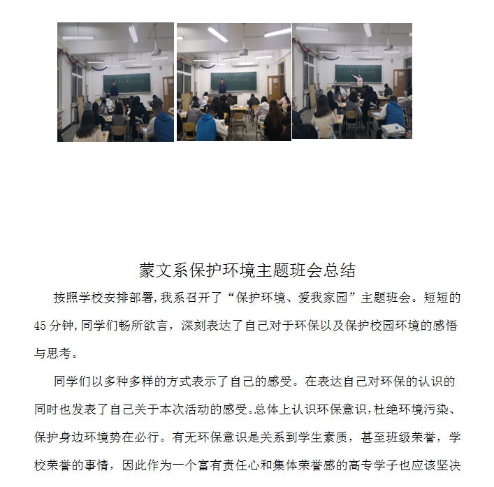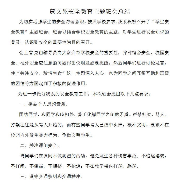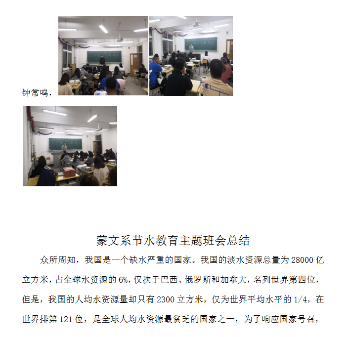 蒙文系安全教育、节水节电、爱护环境班会总结
