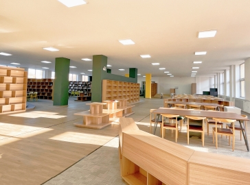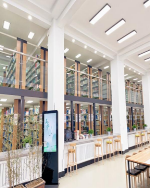 于2021年末翻修改造后正式投入使用,其中一二三楼为借阅区,四楼为办公区。
