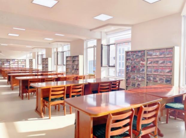 图书馆在主校区尚学楼二层西侧社有阅览室,总面积600多平,现已翻修完毕,设置阅览座位130余个;