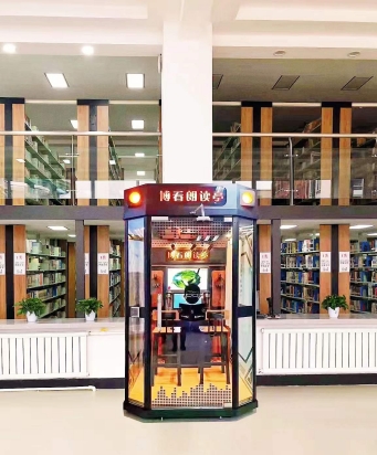 朗读亭数据库配备两把美式休闲吧椅,专业麦克风和耳机。并采用高强度的钢化、隔音玻璃,可以