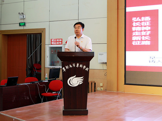 吕东春校长从长征的背景原因、长征胜利的重大意义、长征精神的内涵和如何走好新时代长征路四个方面,结合生动感人的故事,详实的史料阐述了伟大的长征精神,再现了长征这一震撼世界、彪炳史册的革命壮举,为全校党员们进行了一次深刻的思想洗礼。她强调,一代人有一代人的长征路,一代人有一代人的使命担当,我们要牢记“人民就是江山,江山就是人民”,作为职业教育工作者我们要继承党的伟大事业,不断开拓创新,为社会,为国家培养高素质、高技能人才,不忘初心,牢记使命,为实现中华民族伟大复兴添砖加瓦。