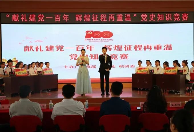 一百年风雨征程,一百年荣辱与共;一百年沧桑巨变,一百年壮丽辉煌。为迎接中国共产党百年华诞,6月16日下午2点在尚学楼五楼报告厅,由思政部、学生处、团委共同举办的“献礼建党一百年 辉煌征程再重温”党史知识竞赛拉开帷幕。校党委书记任志伟,党委副书记刘振宇、副校长王立宏、副校长魏彤光,党委学生工作部部长毕烨明、组织部长周波、发展规划与质量管理办公室主任王春梅、思政部主任尤明秋、学生处处长王国成、团委副书记吴迟出席了本次活动。思政部全体教师、各系书记、辅导员及部分学生代表出席了本次知识竞赛。思政部张琪、陶晓颖、闫丽红三位教授作为评委对本次比赛中的重点难点为现场观众进行了解读。