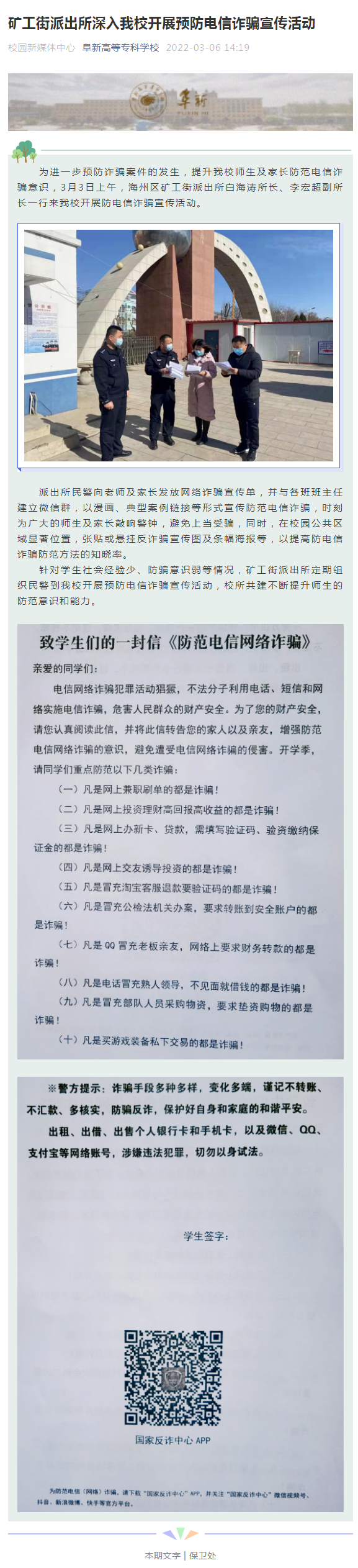 矿工街派出所深入beat365开展预防电信诈骗宣传活动