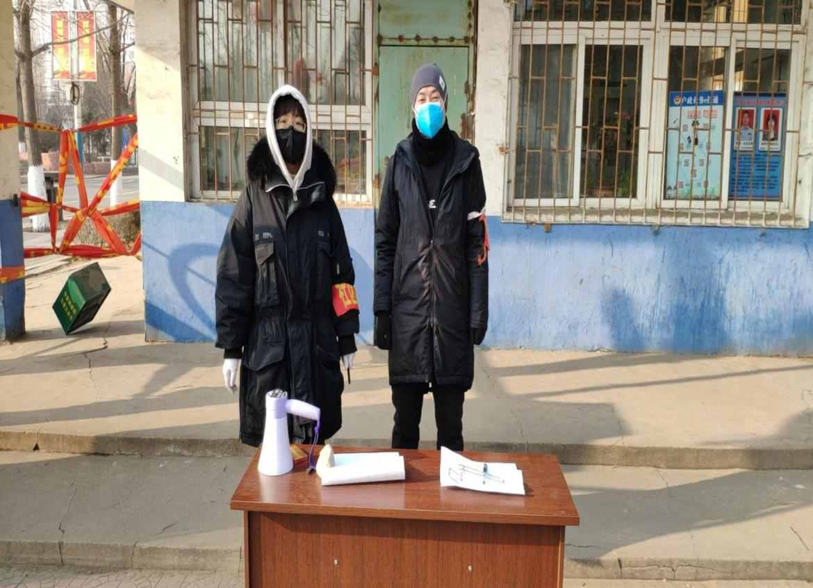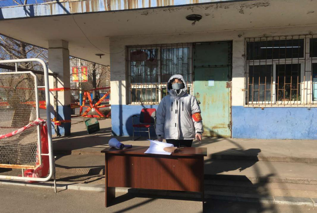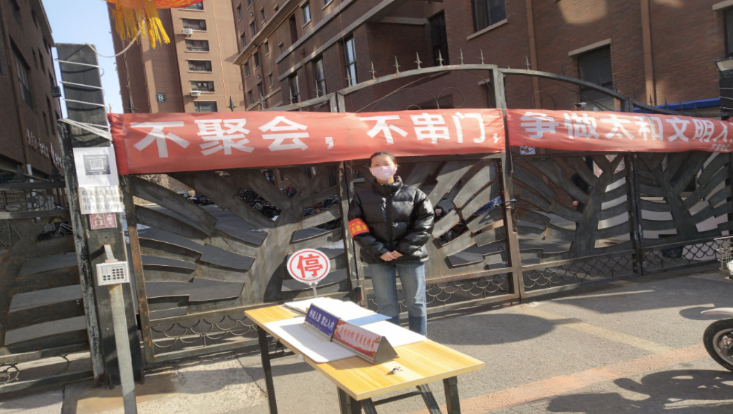 公建系党员代表李苗苗同志在疫情刚刚开始时就积极的加入了志愿活动中。她的志愿服务工作内容是对进出小区的居民进行体温测量、记录出入小区的居民情况以及对无故外出的居民进行劝阻。