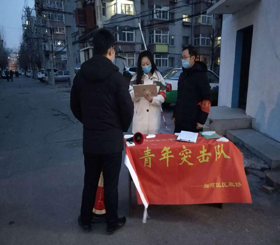 公建系党员志愿者于洋主动申请参加了阜新市辽工大社区组织的疫情防控志愿者活动于洋同志在参与志愿服务工作期间,主要负责协助社区在小区门口拦卡和挨家挨户进行入户排查并整理表格,负责路口的出入证发放、人员出入登记和体温测量的工作并整理表格,负责路口的出入证发放、人员出入登记和体温测量的工作。