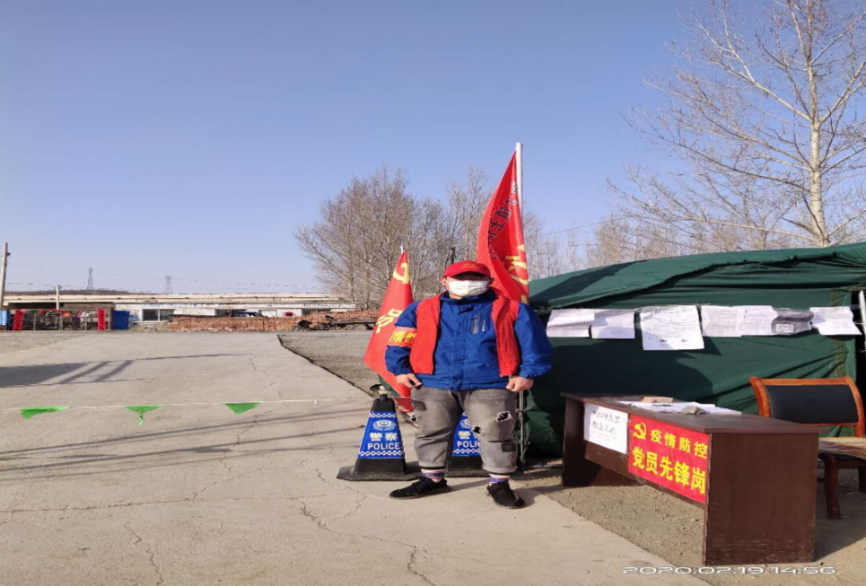 公建系党员志愿者葛自力在辽工大区进行社区人员排查登记工作,当好小区“守门员”“护卫队”,全面落实防控措施,严格排查、严格防范,禁止外来人员入社区,对所有进出人员及车辆进行登记并检测体温和消毒,严格落实日报告、零报告制度,努力防范疫情蔓延。