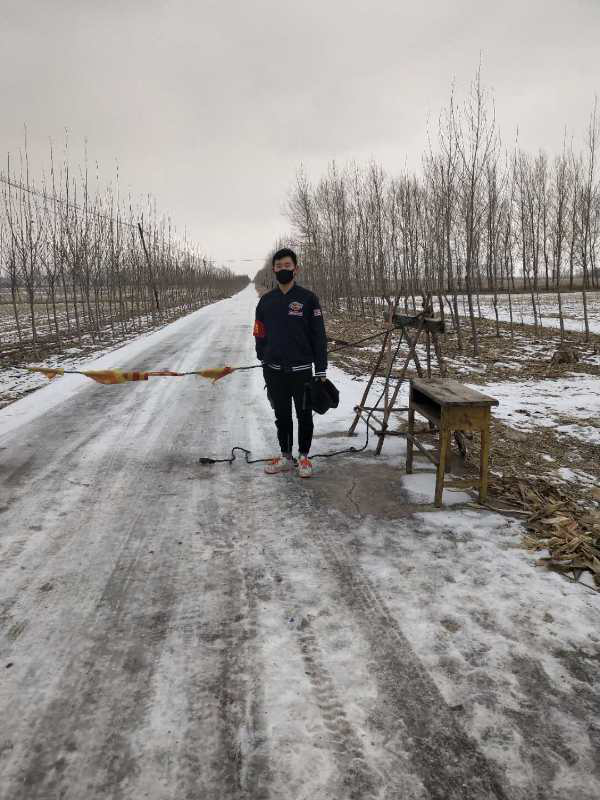 鞠文哲,公建系18道桥1班学生。自2020年2月10日起在辽宁省朝阳市凌源县大河北镇大河北村东组负责发放行人及机动车通行证,给他们测体温。
