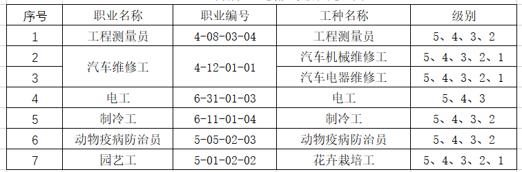 一、职业技能等级认定职业(工种)目录及计划