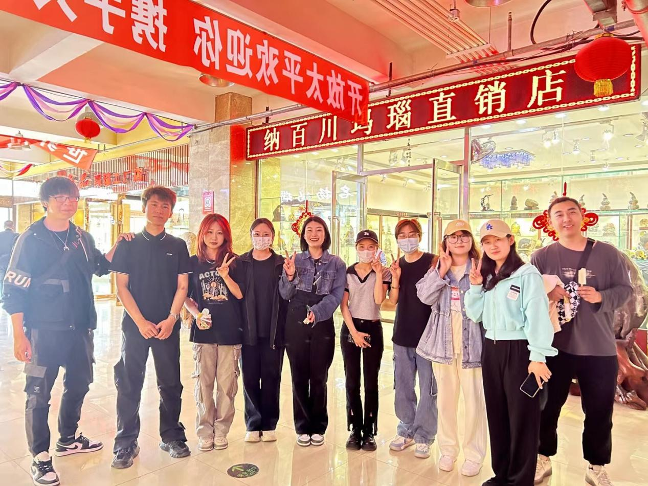 第四站是阜新鑫维玛瑙城和阜新玛瑙宝石城。这两个玛瑙城集中了阜新市内的几百家商户,同学们一面近距离接触琳琅满目的玛瑙制品,一面按照出发前的分工,对商户进行问卷调查,发放并回收问卷150余份,之后根据调查情况,撰写调查报告。并准备回校后进行省内外玛瑙消费者情况调查,以更全面地了解玛瑙产业发展情况和市场需求情况,并把玛瑙艺术品营销结合到专业实践中去。