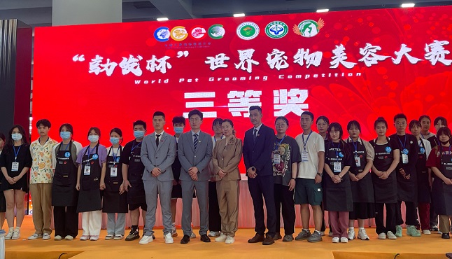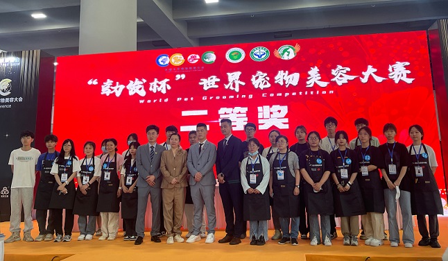 近日,由中国兽医协会兽医职业技能发展分会携手IGC国际宠物美容组织联合会举办的金指奖“勃发杯”世界宠物美容大赛在广州中国进出口商品交易会展馆举行。beat365农牧系教学团队的薛可老师带领3名同学参赛。beat365荣获优秀团体奖,齐姗妮、马玉娴同学荣获大赛二等奖,董欣同学荣获三等奖。