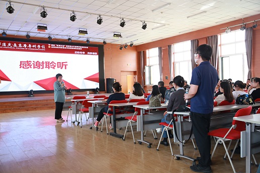 金艳秋教授从政策背景、三教改革、教学大赛和在线课程等方面对课程建设和教师教学能力大赛进行了详尽的剖析和讲解。金教授结合自己多年的大赛和课程建设经验,运用详实的案例,生动地讲解了教学能力大赛和课程建设的重点和关键,对标国家政策和建设标准,对教师教学能力大赛的内涵创新、评价标准、参赛材料、教学设计、创新成果等进行了精彩分享和解析。金教授在讲座中着重强调教师要基于课程标准,优化课程结构,注重教学实施的有效性;要提高课程思政内涵融入课堂教学的水平,注重过程性评价与结果性评价相结合,切实落实“岗课赛证”综合育人。