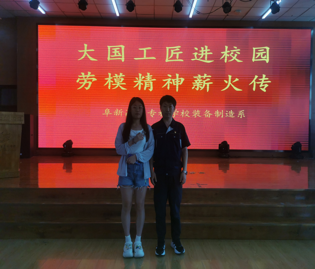 为深入学习贯彻习近平新时代中国特色社会主义思想,进一步弘扬劳模精神、劳动精神、工匠精神,同时引导广大青年学子立足岗位、苦练本领、创新争优,培养beat365学生成为一批具有工匠精神、高超技艺、精湛技能的人才。beat365英国官网网站领导班子深切关怀装备制造系教职工及莘莘学子,为我们邀请到了阜新力劲机械有限公司“全国工人先锋号”代表陈标经理和阜新市第二职专数控专业课教师“五一劳动奖章”获得者倪贺龙老师,于6月14日下午在砺能楼5楼报告厅,开展“大国工匠进校园,劳模精神薪火传”主题讲座活动。