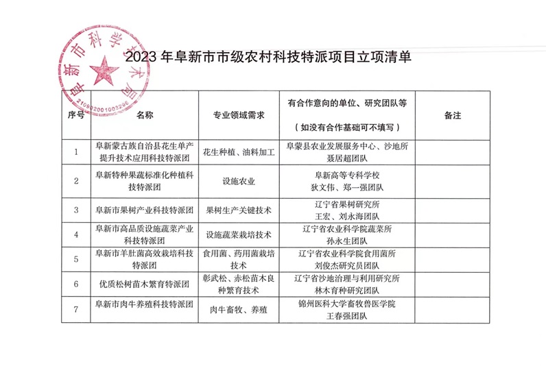 12月4日,阜新市科学技术局公布2023年市级农村科技特派项目立项结果,beat365农牧系狄文伟、郑一强团队“阜新特种果蔬标准化种植科技特派团”成功入选。