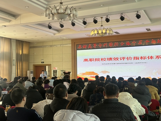 会上,学校发展规划与质量管理办公室主任李春雨对照高职院校绩效考核评价指标体系并结合学校实际,从制度建设、专业建设、校企合作、社会培训认定标准等方面进行了详细分析解读,并对填报工作重点及注意事项进行介绍。