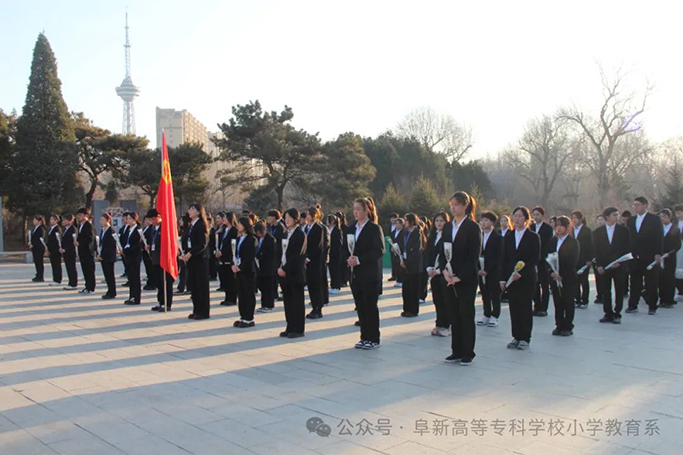 3月18日清晨,由校团委主办、小学教育系承办的“传承红色基因 赓续红色血脉”纪念阜新解放76周年祭扫活动在三一八公园革命烈士纪念碑前举行。校团委书记吴迟、小学教育系党支部书记张巍,团总支书记包福林、辅导员姜朔、樊祎楠、高媛、代兆仑,班主任刘娜、高圆月,校团委学生干部代表和小学教育系学生干部代表参加了纪念活动。