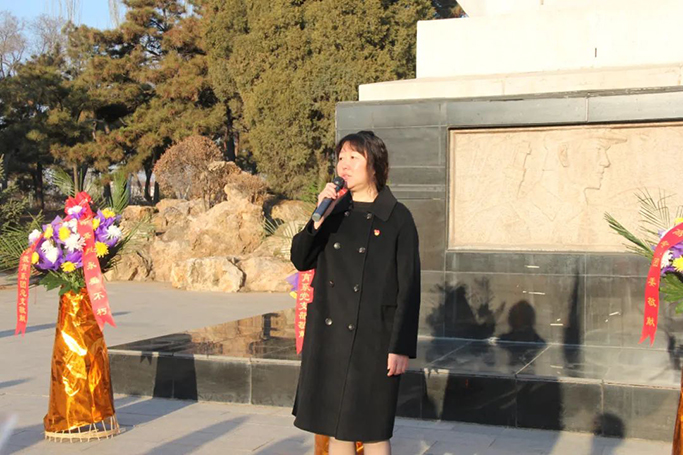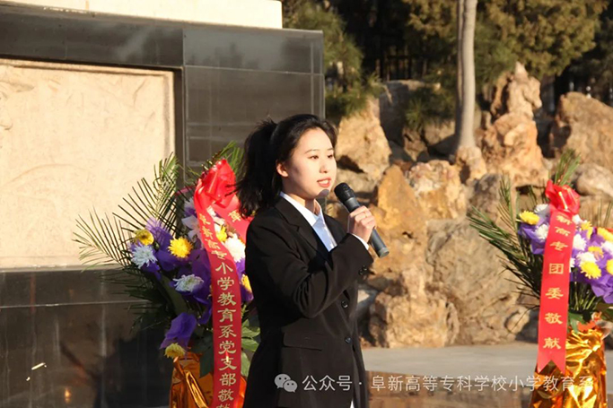 小学教育系党支部书记张巍代表全系师生,向为阜新解放浴血奋战、英勇牺牲的革命英雄们致以深切的缅怀和崇高的敬意!她在寄语中勉励全系青年,作为高专学子,我们要时刻牢记“修德砺能”的校训,坚定理想信念,自觉践行社会主义核心价值观,把实现个人梦融入国家梦、民族梦之中,将爱国之情和报国之志落实到具体工作和学习中,从我做起,从自身做起,努力学习文化知识,掌握各种技术技能,加强思想品德修养,为祖国富强和人民幸福做出应有的贡献!以优异的成绩告慰革命先烈!