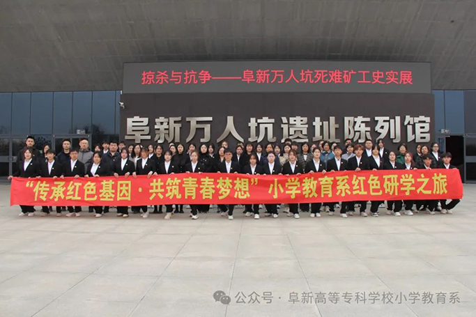 为加强对学生的爱国主义教育,4月10日,由校团委主办,小学教育系承办的“传承红色基因·共筑青春梦想”红色主题研学实践活动在阜新万人坑死难矿工纪念馆举行。校团委杨凡老师、小学教育系党支部书记张巍、小学教育系党支部党员教师,校团委学生干部代表和小学教育系学生干部代表参加了本次活动。