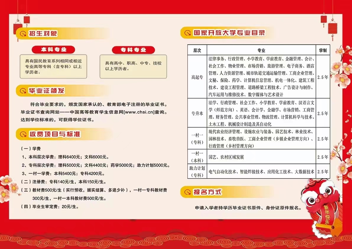 2022年春季电大开放教育招生简章