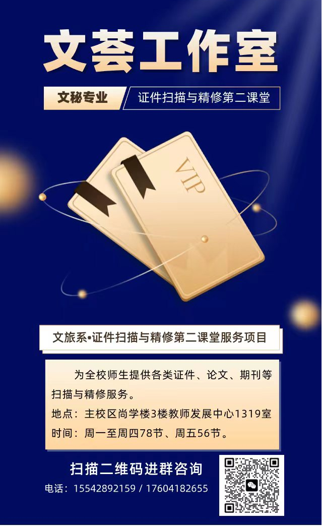 努力实现第一课堂和第二课堂“两个课堂”的结合,不断提高学生综合素质,提升专业技能和人才培养质量。用活“第二课堂”,精准切入提高专业技能。利用课余时间有序开放实验实训室。让学生利用课余时间开展实践技能提升活动,增加学生实践操作的机会。科学合理地结合专业综合素质、技能培养,来“压缩”学生玩手机的闲暇时间。1、现代文秘专业的第二课堂“文荟工作室”