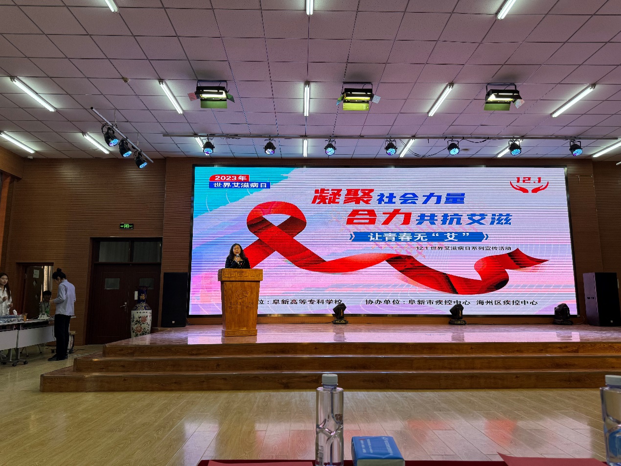 活动通过展示宣传海报、发放宣传资料、观看教育短片、专题讲座、讲述艾滋病故事、现场知识竞答等形式,向学生宣传艾滋病防治知识。市疾控中心艾滋病与慢性病预防控制部部长马玉霞,围绕艾滋病的传播和预防进行了深入浅出的讲解,着重讲解了我市艾滋病流行现况、传播途径、防治措施,为在场同学作了一场生动的防艾知识讲座。宣讲员通过一件件警示案例让同学们深刻地了解了艾滋病的严重危害,学会正确掌握艾滋病的科学知识、预防方法。现场知识竞赛环节,加深了同学们对防艾知识的理解,切实筑牢防艾的思想防线。