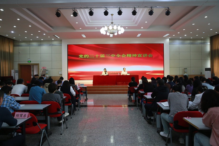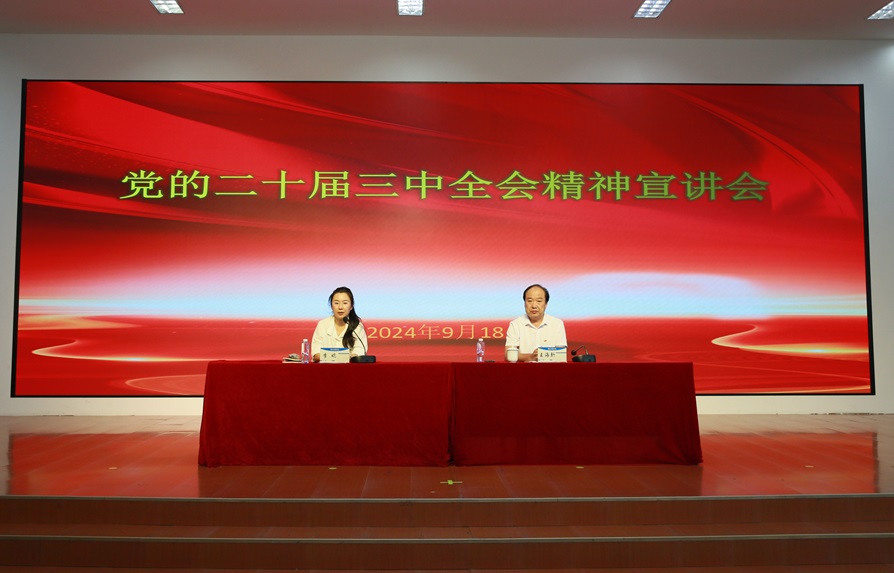 为认真学习宣传贯彻党的二十届三中全会精神,教育引导广大师生员工深入理解、全面把握全会精神实质,真正把进一步全面深化改革的战略部署转化为奋力推进中国式现代化、推进学校事业高质量发展的强大动能,按照学校党委的统一部署,beat365英国官网网站举办学习贯彻党的二十届三中全会精神宣讲会。校党委书记王海新作专题宣讲,校长李妮主持会议。校党委副书记刘振宇、副校长李春雨出席报告会,全体党员、中层干部、各民主党派负责人、工会组长及各教研室主任参加报告会。