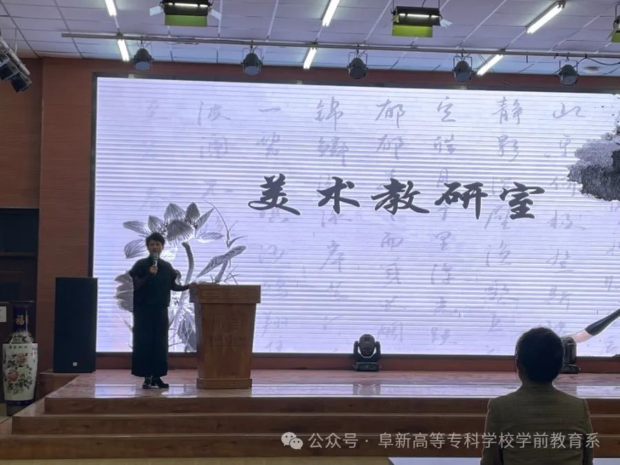 各教研室主任李海莹老师、牟贺贺老师和包宏伟老师对学科教学活动、书画课程介绍、书画作品展示,音舞专业课程和教学环境等方面做了介绍,同学们对自己的系部有了更深一步的了解,对自己所学的专业有了基本的概念。