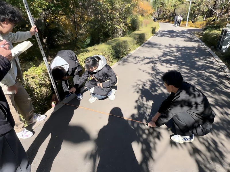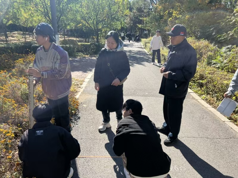 在专业课程教学中如果没有行动、创造、体验、感悟,只有记忆、背诵、理解、思维,根本无法形成核心素养。为更好地强化学生实操能力,突出实践育人的理念,于10月15日,在专业课程教师甄永利、车莉娜两位老师的带领下,23级道桥专业学生来到学校附近的三一八公园开展“路基横断面”课内实训。