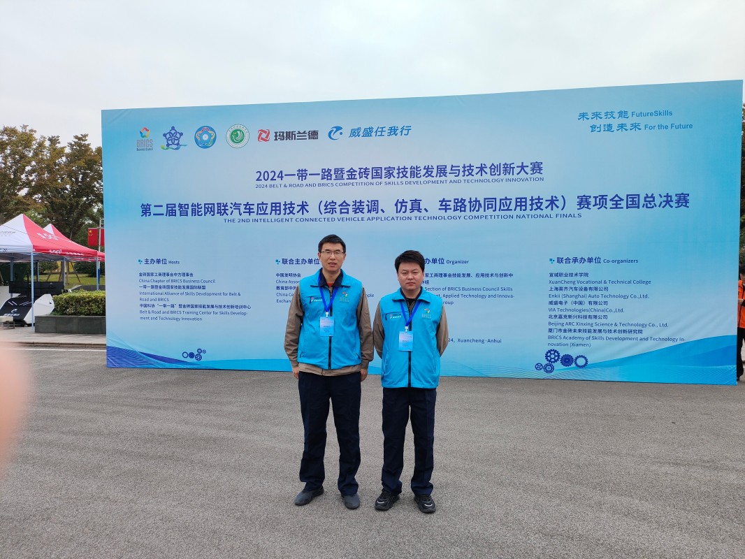 beat365装备制造系新能源汽车专业的刘宏南、马立强两位教师代表辽宁阜新参加了职工组比赛。为迎接本次大赛,学校各级领导给予了高度重视和大力支持,提前派出参赛教师团队赴上海进行为期三天的赛前专项培训,为参赛提供了充分准备。培训不仅提升了参赛教师在智能网联汽车领域的实操技能,也进一步推动了学校智能方向的发展和教师团队的综合能力提升。