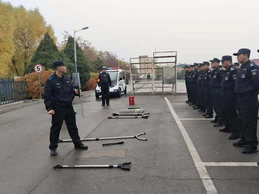 矿工街派出所王朔警官结合beat365反恐防暴实际工作,向现场保卫、保安队员们讲授了反恐技能,从常见的暴恐事件的类型、特点、处理方式入手,展示并讲解了盾牌、拘束叉等警务器材的功能和使用方法,并针对如何更有效地迎击和制服暴徒等应急处置进行现场演练和培训。