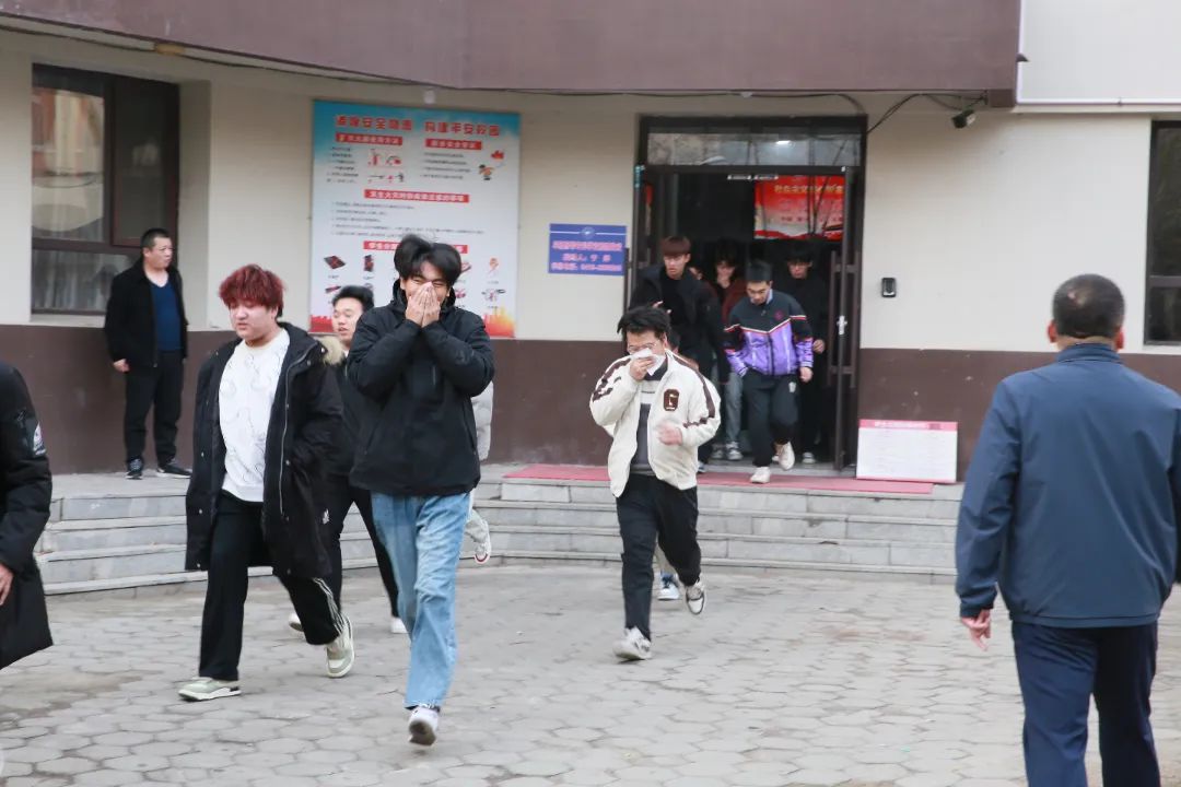 下午15:00分警报拉响,全体住宿学生在公寓管理员及各系负责老师的引导下,按照指定的路线、有序、快速、安全的撤离到操场空旷区域。