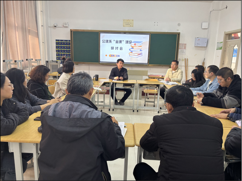 为进一步推进卓越专业群建设,提升课堂教学质量,公建系全体教师于11月13日下午,召开了“金课”建设研讨活动,就如何加强五金建设?特别是如何打造金课等问题展开了讨论。本次教研活动由公建系主任王浩主持。
