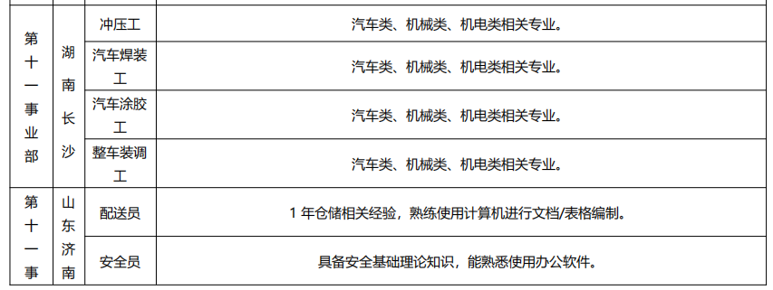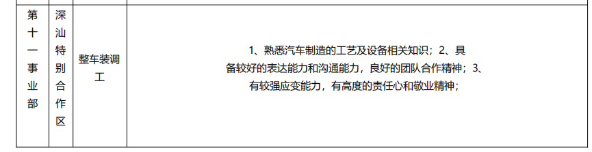 比亚迪技能人才招聘岗位