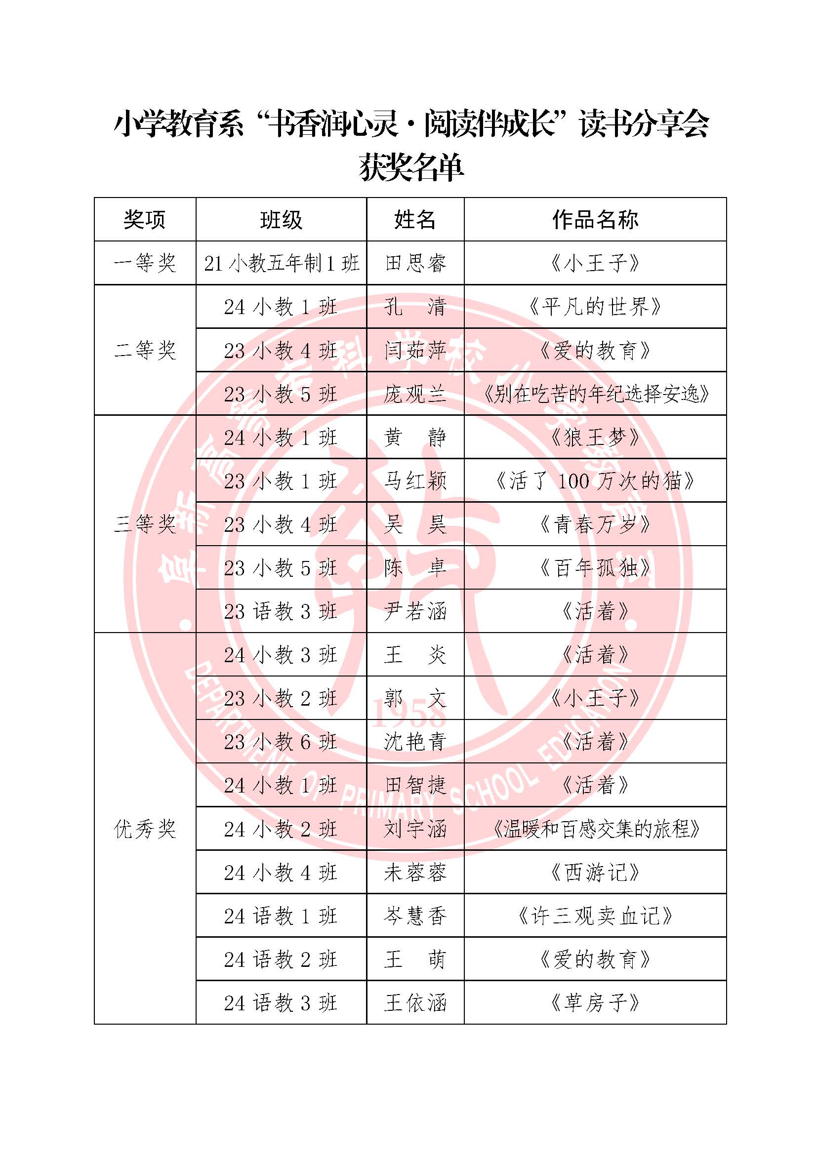 为深入推进学风建设,营造积极向上的校园文化氛围,小学教育系于近日举办“书香润心灵·阅读伴成长”读书分享会。活动以阅读为纽带,鼓励学生分享感悟、碰撞思想,涌现出一批优秀作品,展现了师范生的文学底蕴与教育情怀。
