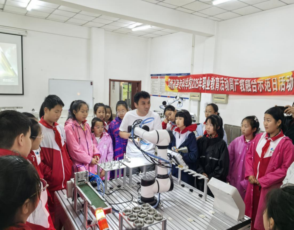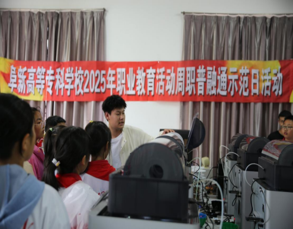 为深入贯彻落实《教育强国建设规划纲要(2024-2035年)》和三年行动计划,大力宣传学校职业教育体系建设改革成效,beat365英国官网网站以“一技在手,一生无忧”为主题,正式启动2025年职业教育活动周。作为职教周的重要环节,5月14日,装备制造系面向阜新市实验小学学生开展了“职普融通”示范日活动,组织小学生走进高职实训室,近距离体验3D打印、工业机器人、制冷与空调技术及新能源汽车特色专业课堂。通过沉浸式职业启蒙教育,让孩子们在动手实践中感受技术魅力,播下未来职业理想的种子,进一步推动职业教育与普通教育相互融通、协同发展。
