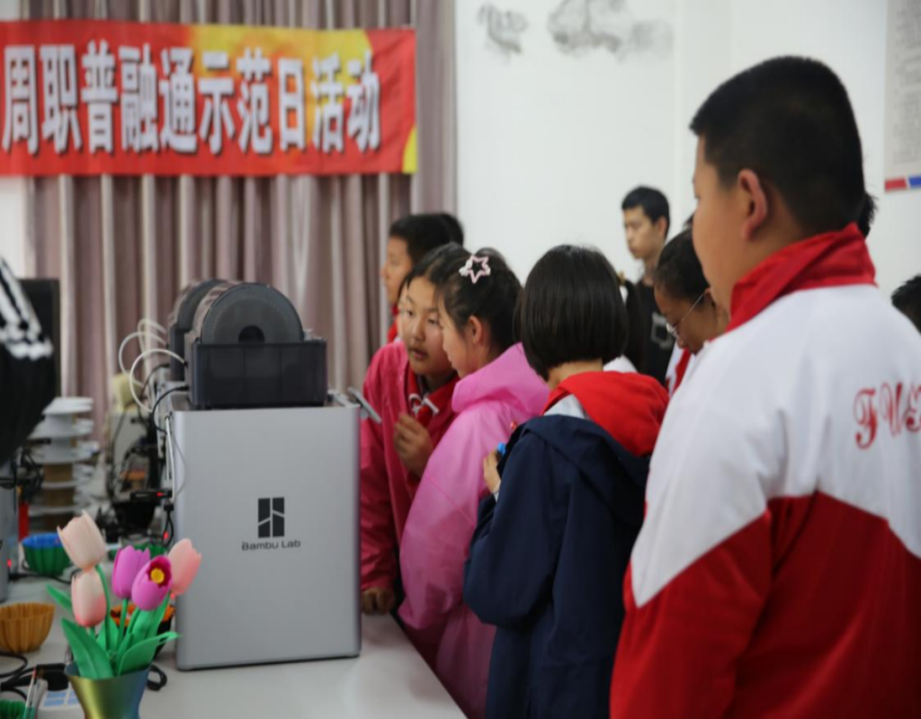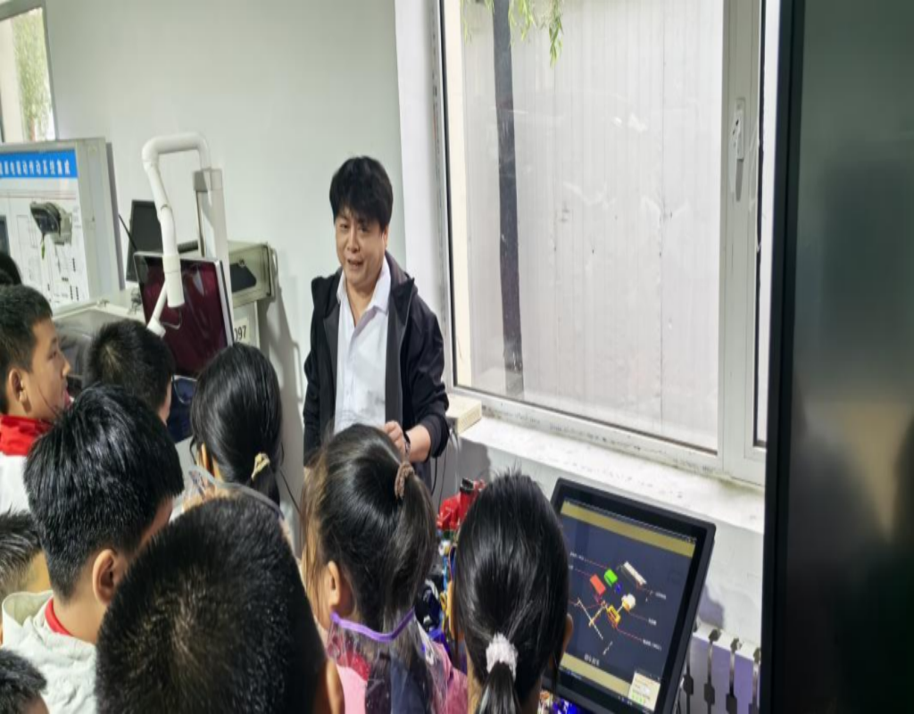 此次活动的第一站是3D 打印实训室,活动现场,3D 打印实训室负责教师周双喜老师安排专人通过现场操作演示,向孩子们展示了 3D 打印技术的神奇过程。从简单的模型构思,到通过计算机设计出三维模型,再由 3D 打印机逐层打印出实体物品,孩子们亲眼目睹了物体从虚拟数据到真实存在的 “蜕变”,领略到科技的强大创造力。学生们积极参与互动,提出各种充满好奇的问题,活动现场气氛热烈。通过展示3D打印技术,为孩子们带来一场别开生面的科技体验。