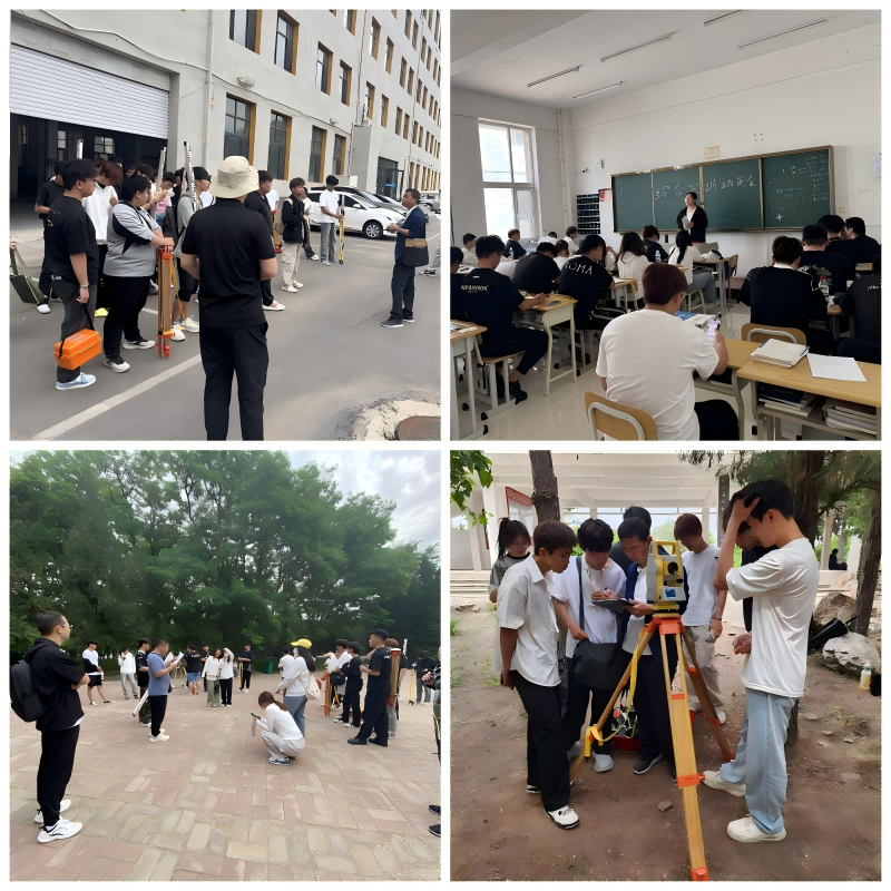 在这个火热的夏天,我系高职24级道桥和24级建筑专业共计115名学生,在专业教师带领下开展了为期两周的工程测量综合实训。