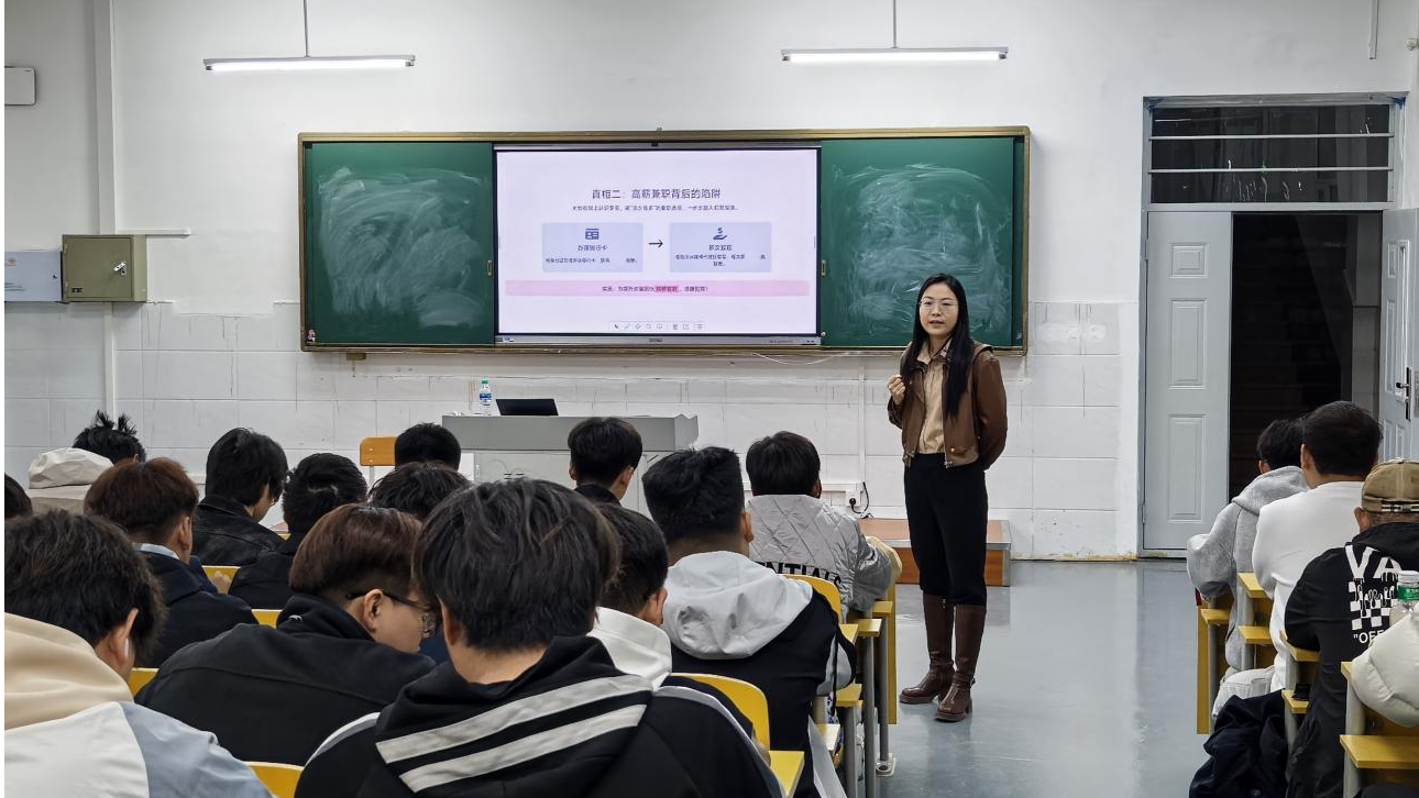 本次普法讲座创新采用“海龟汤”推理游戏,围绕大学生“大刘开学了”的经历展开,引导学生化身“法治侦探”,通过提问与推理,层层揭开其从恋爱消费、KTV讲义气,到轻信“高薪兼职”、出租银行卡、协助取现获利,最终触犯“帮信罪”和“掩隐罪”的全过程。情节源自真实案例,高度还原校园生活场景,让学生在沉浸式互动中直面“取自己的钱为何犯法”“借卡给熟人是否违法”等困惑。律师现场剖析“日结五百”“熟人请求”等话术背后的诈骗陷阱,揭示“情感绑架”“从众心理”如何一步步诱导人走向犯罪。特别设置“法律盲区扫描”环节,聚焦“帮信罪”低龄化趋势,强化学生对个人信息安全的认知。整场活动融知识性、趣味性与警示性于一体,变被动灌输为主动探究,真正实现“在破案中学法,在讨论中懂法”,有力筑牢青春法治防线。