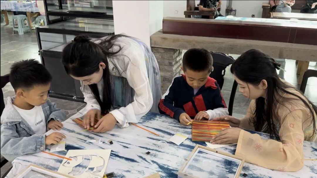 活动现场,身着汉服的同学们以专业素养创新文化传承形式——将漆扇、扎染、宫灯、掐丝珐琅等非遗技艺转化为生动课堂。他们蹲下身与孩子们亲切交流,用趣味小故事讲透非遗知识,手把手引导孩子亲手体验制作;孩子们听得专注、做得认真,现场家长看在眼里、赞在嘴边。家长对同学们的连声夸赞,正是此次非遗实践活动最鲜活的成果写照。