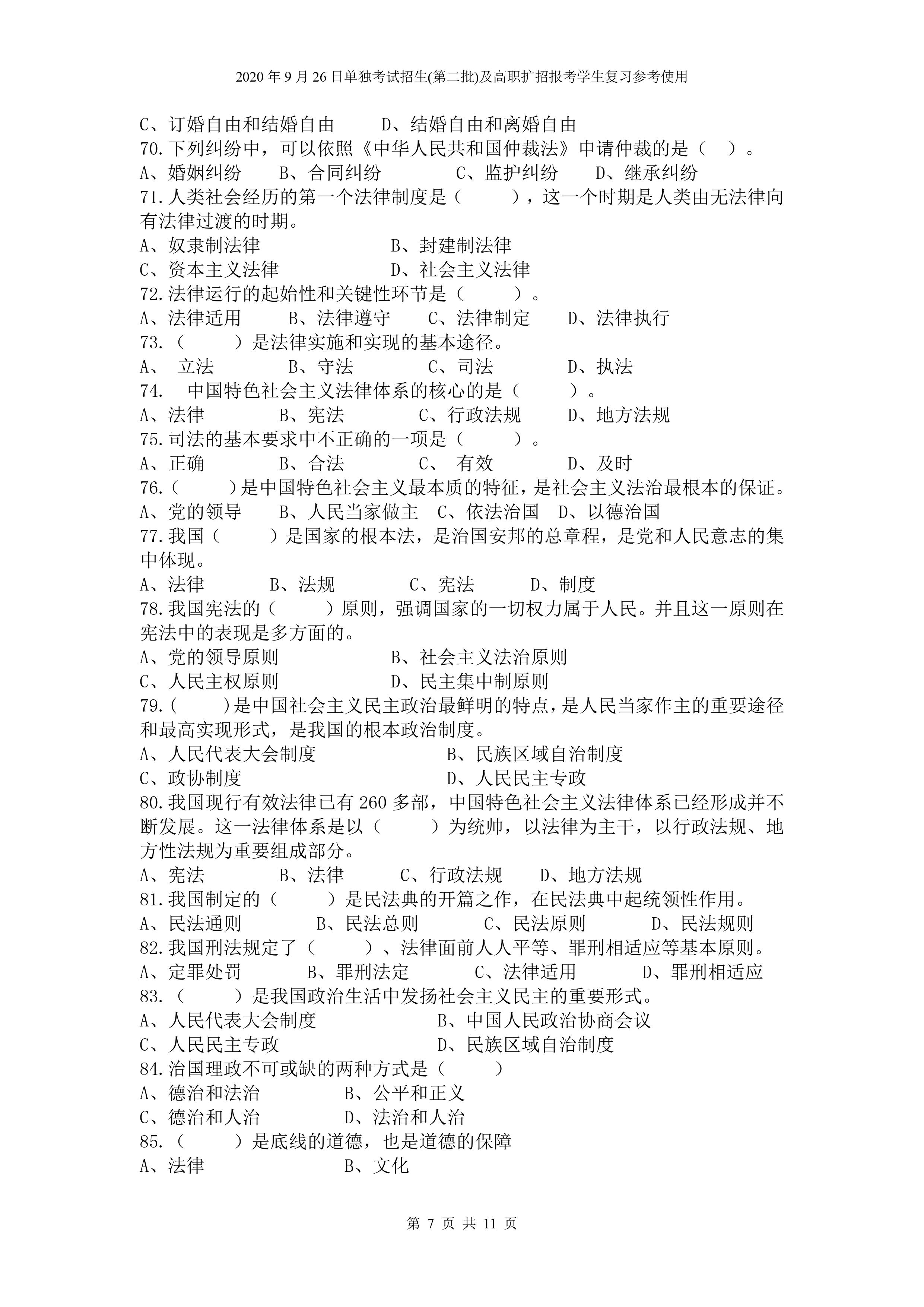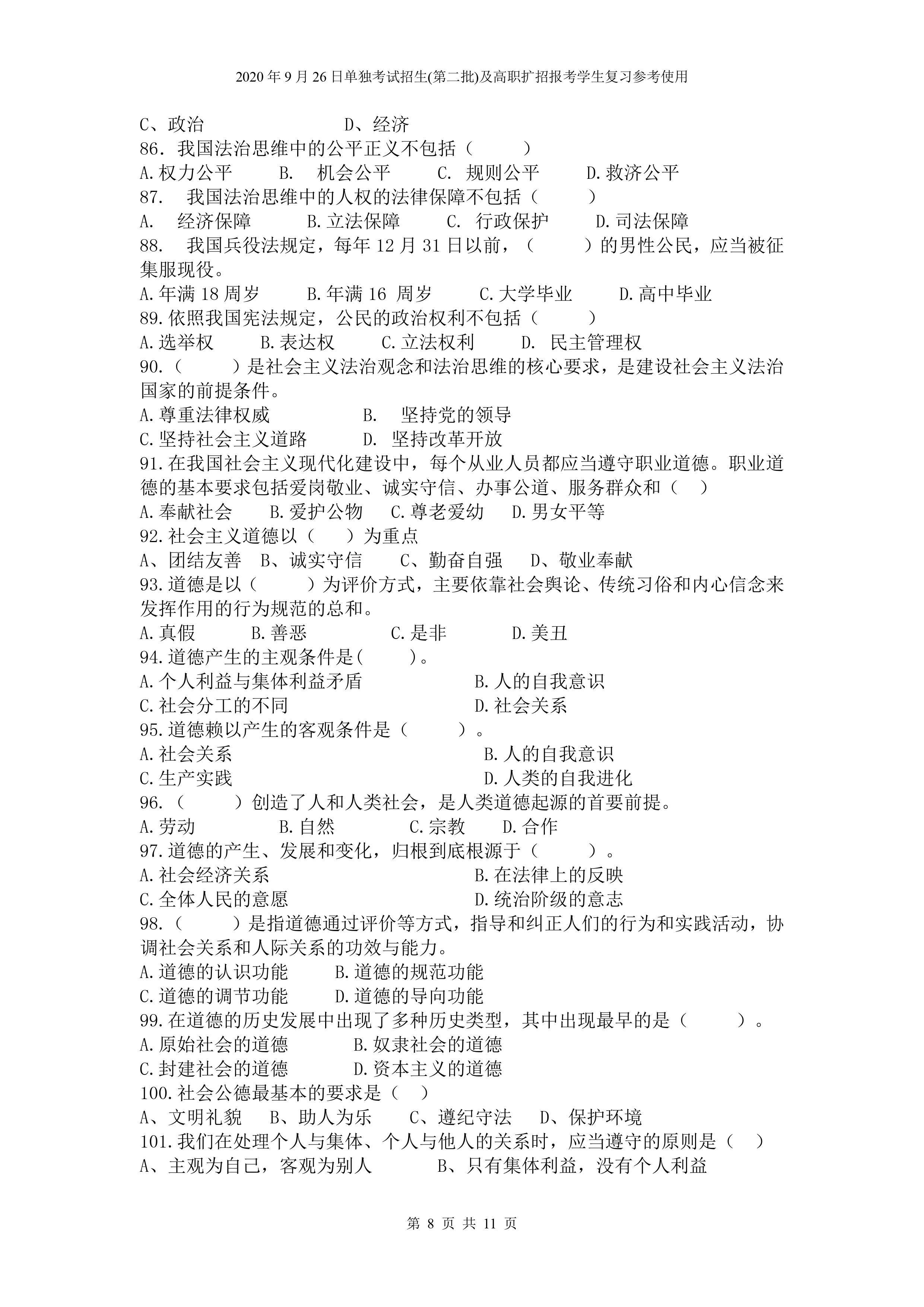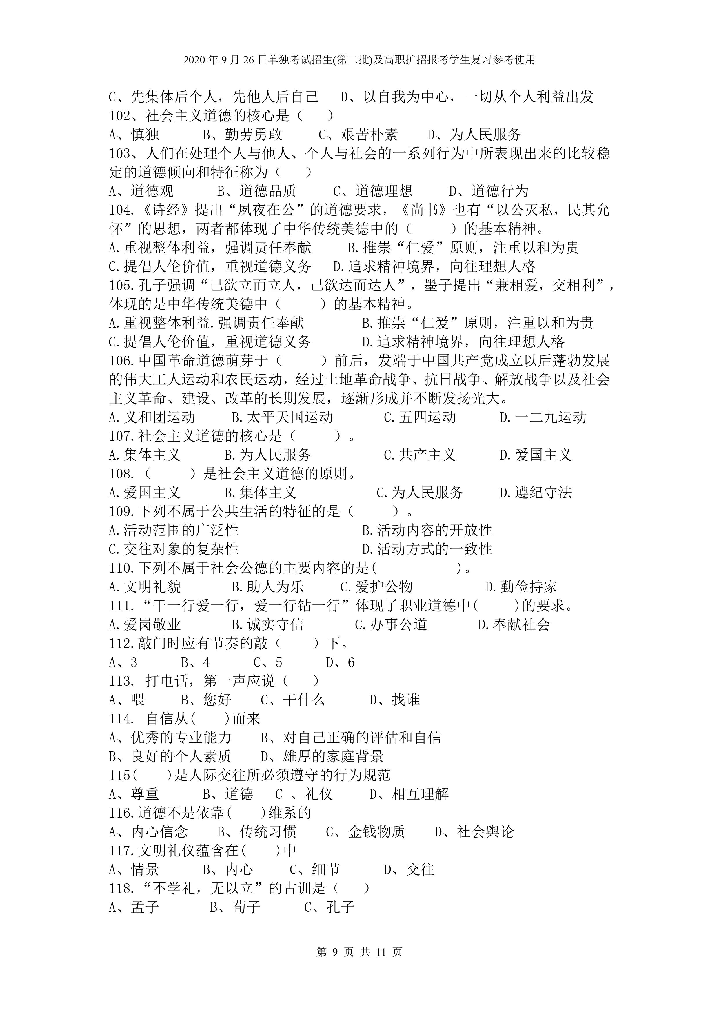 beat365英国官网网站2020年9月26日招生考试《文化素质》复习参考试题