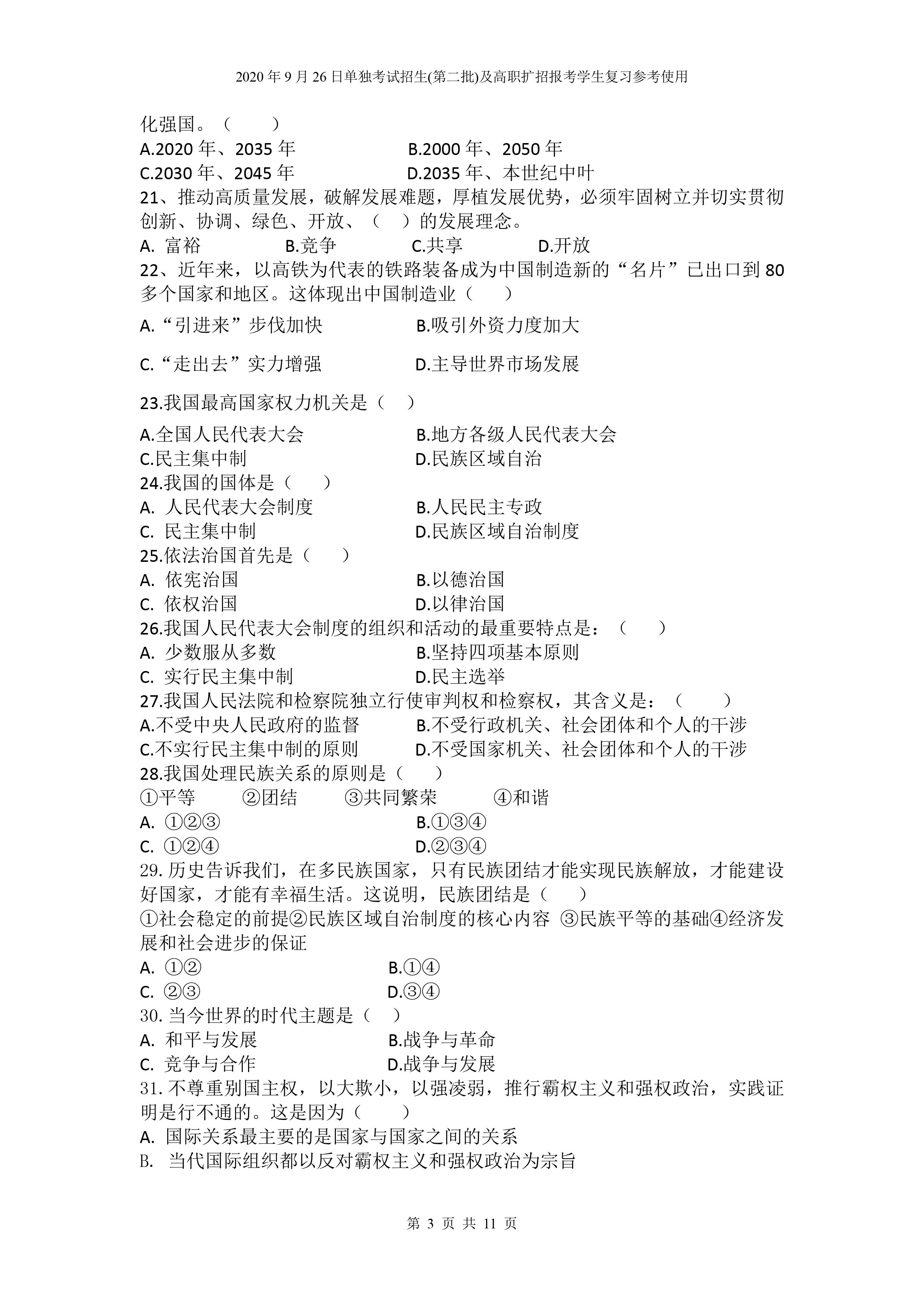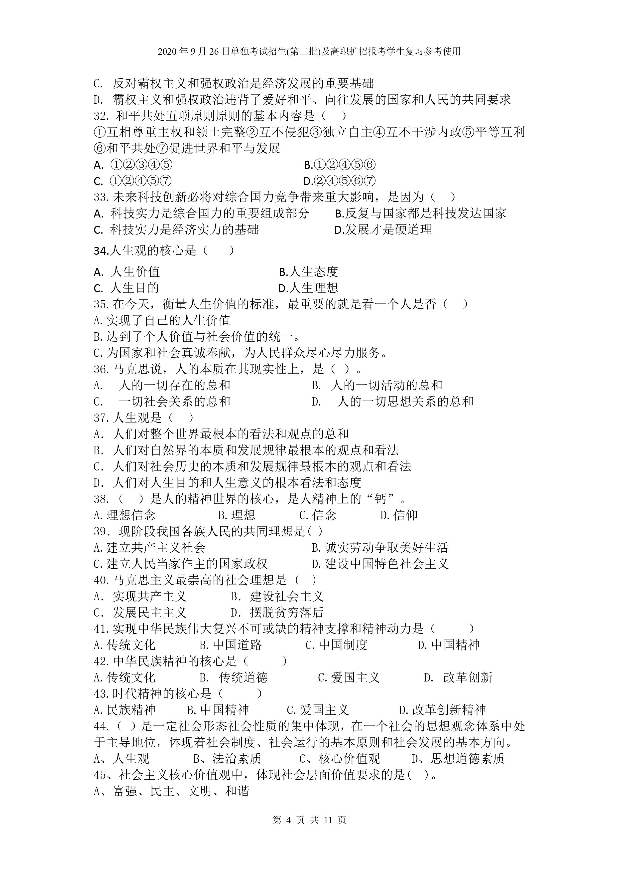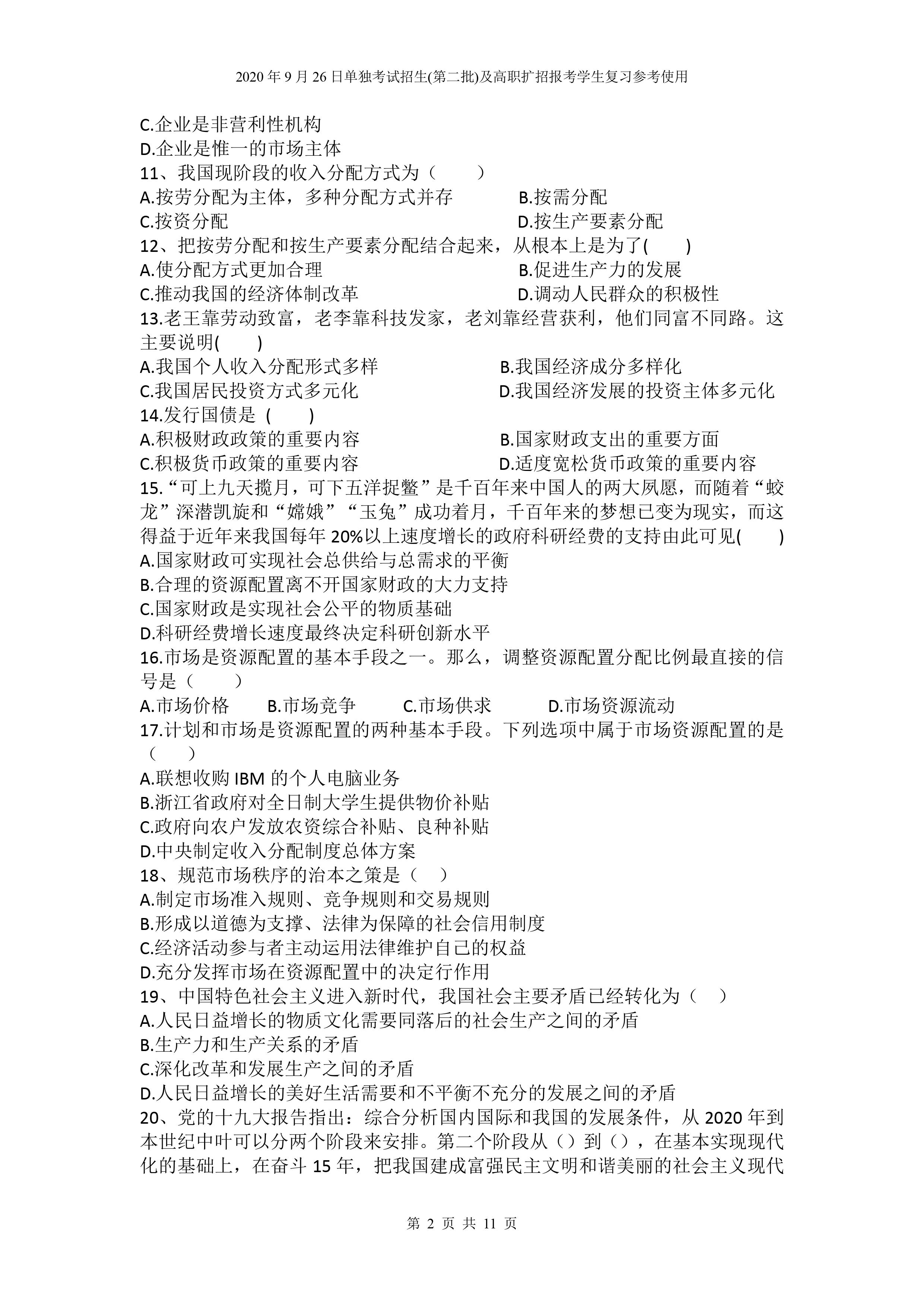 beat365英国官网网站2020年9月26日招生考试《文化素质》复习参考试题